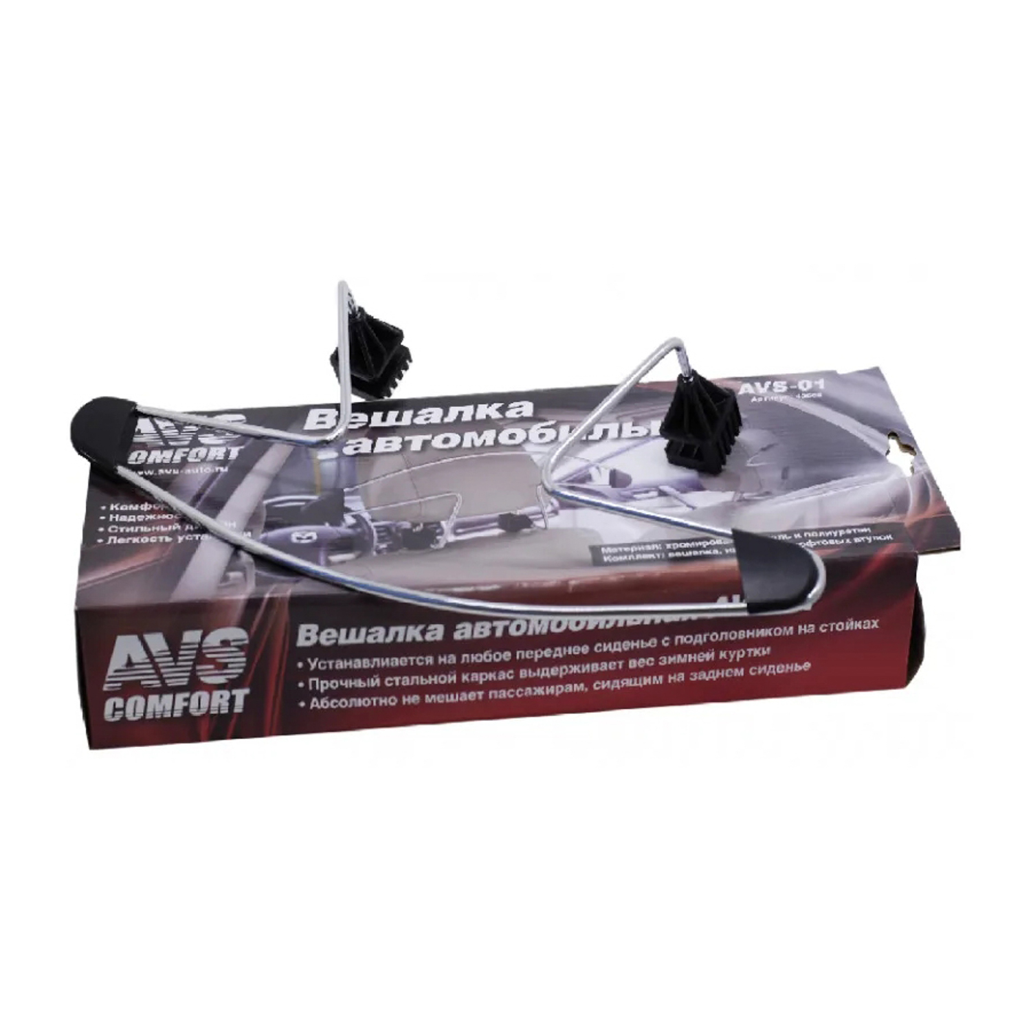 Вешалка для одежды на подголовник хром AVS 43660