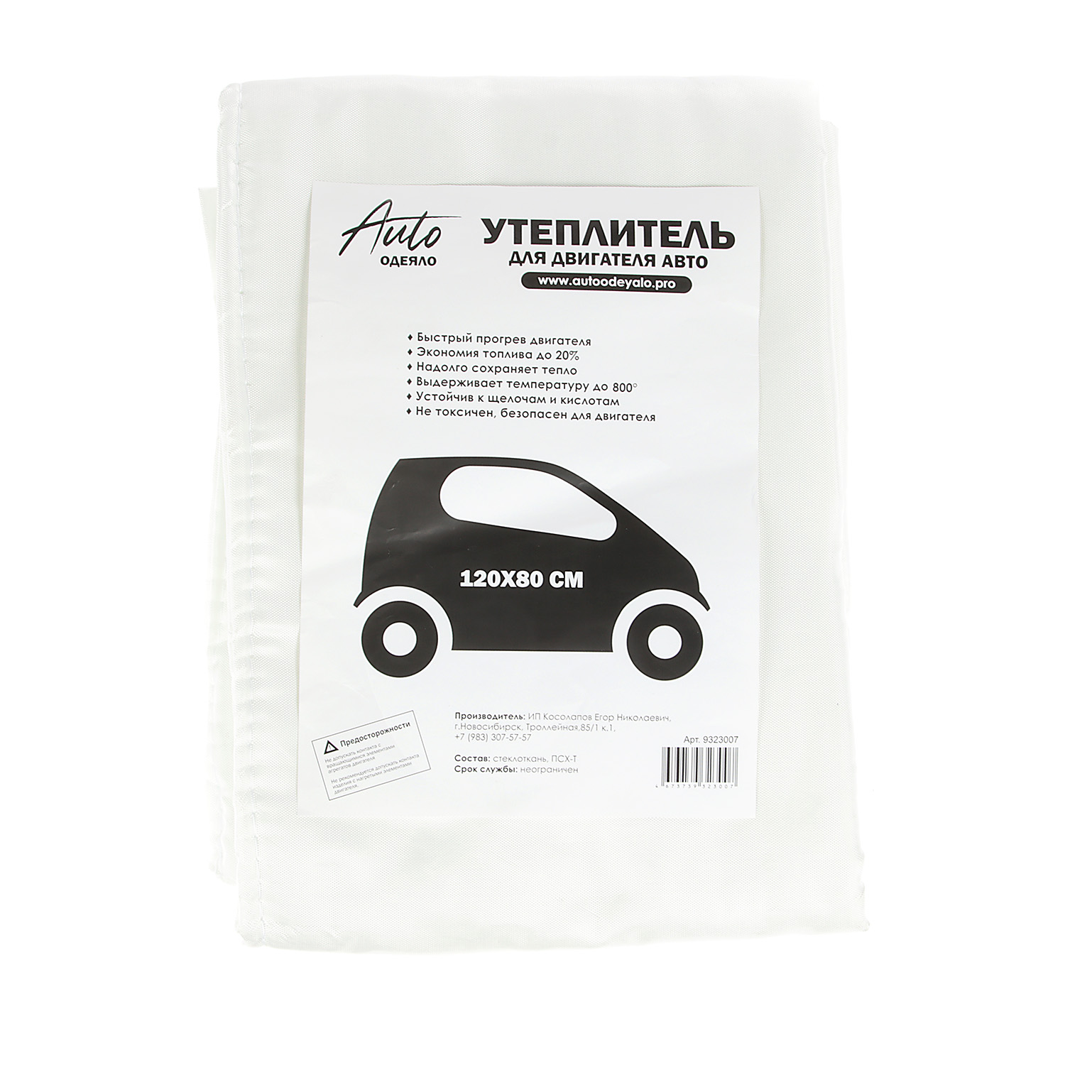 Автоодеяло для двигателя ЭКО 120*80см, облегченное, белое *1/6
