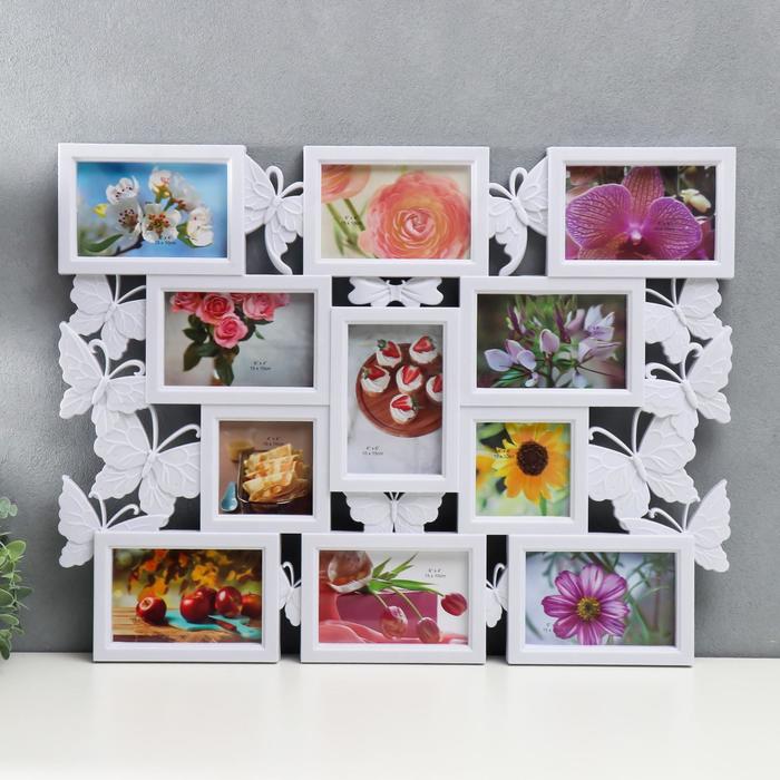 Фоторамка пластик на 11 фото 10х10, 10х15 см "Бабочки" белая 48х63 см 2343671