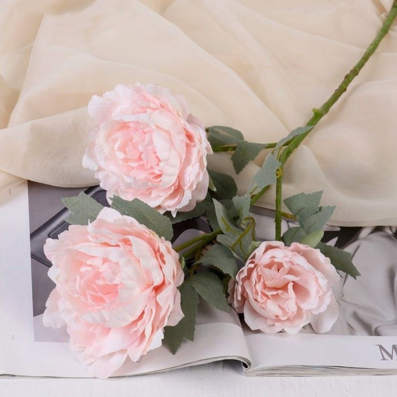 Цветы искусственные "Пион Лунная река" 12*85 см, розовый 4557813