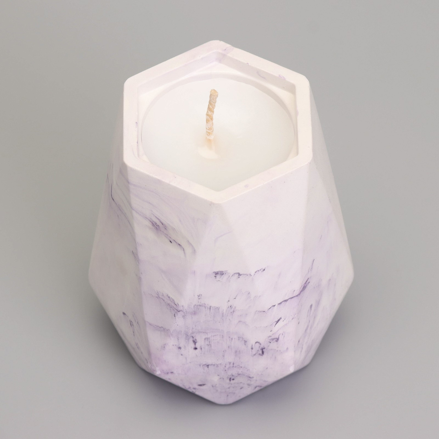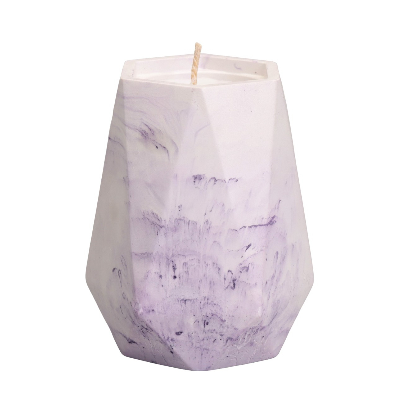Свеча "Ваза. Мрамор" в подсвечнике из гипса с гранями,7х10см,мрамор с фиолетовыми полосками 10059812
