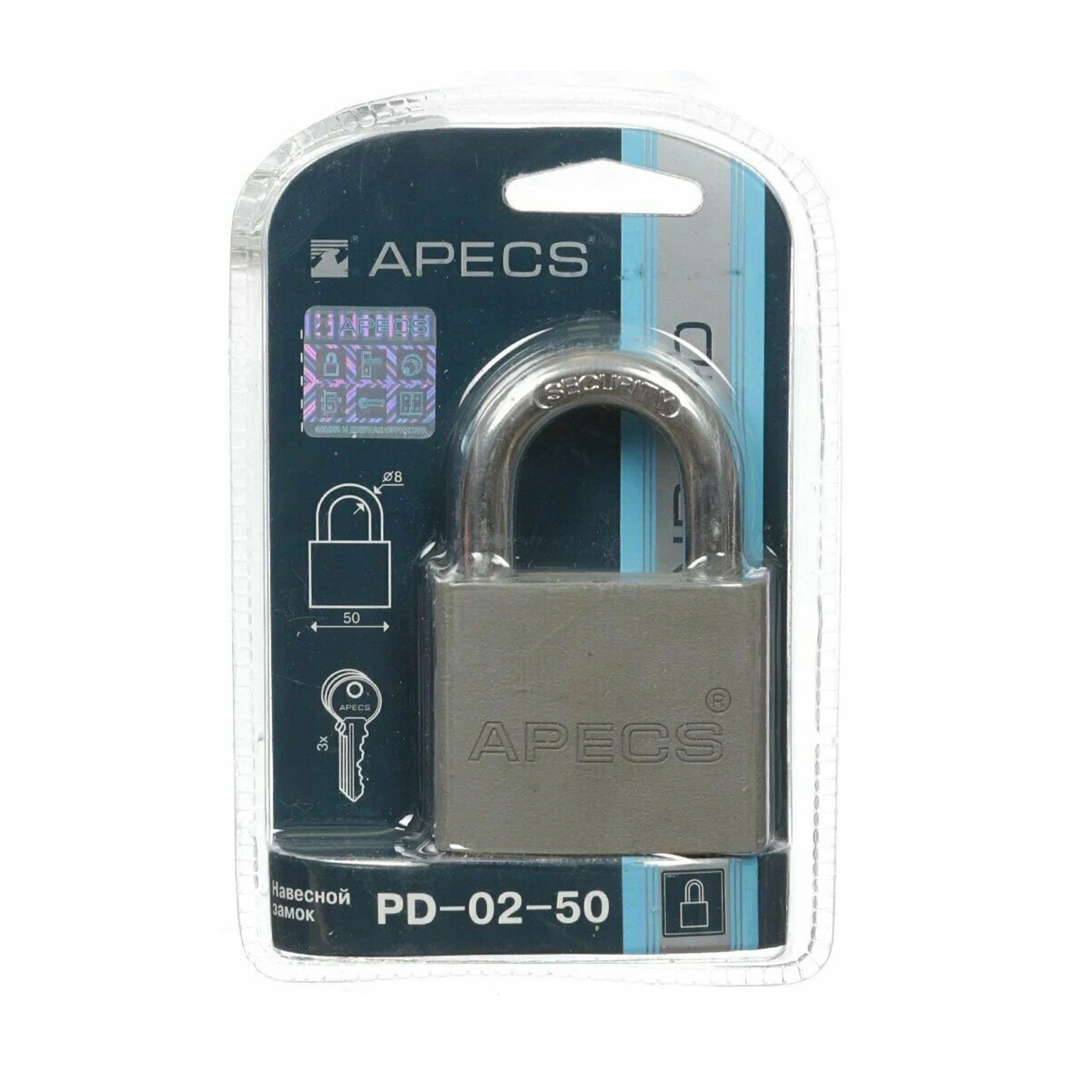 Замок навесной Апекс PD-02-50 50 мм (МВС-125) блистер *1/6/24