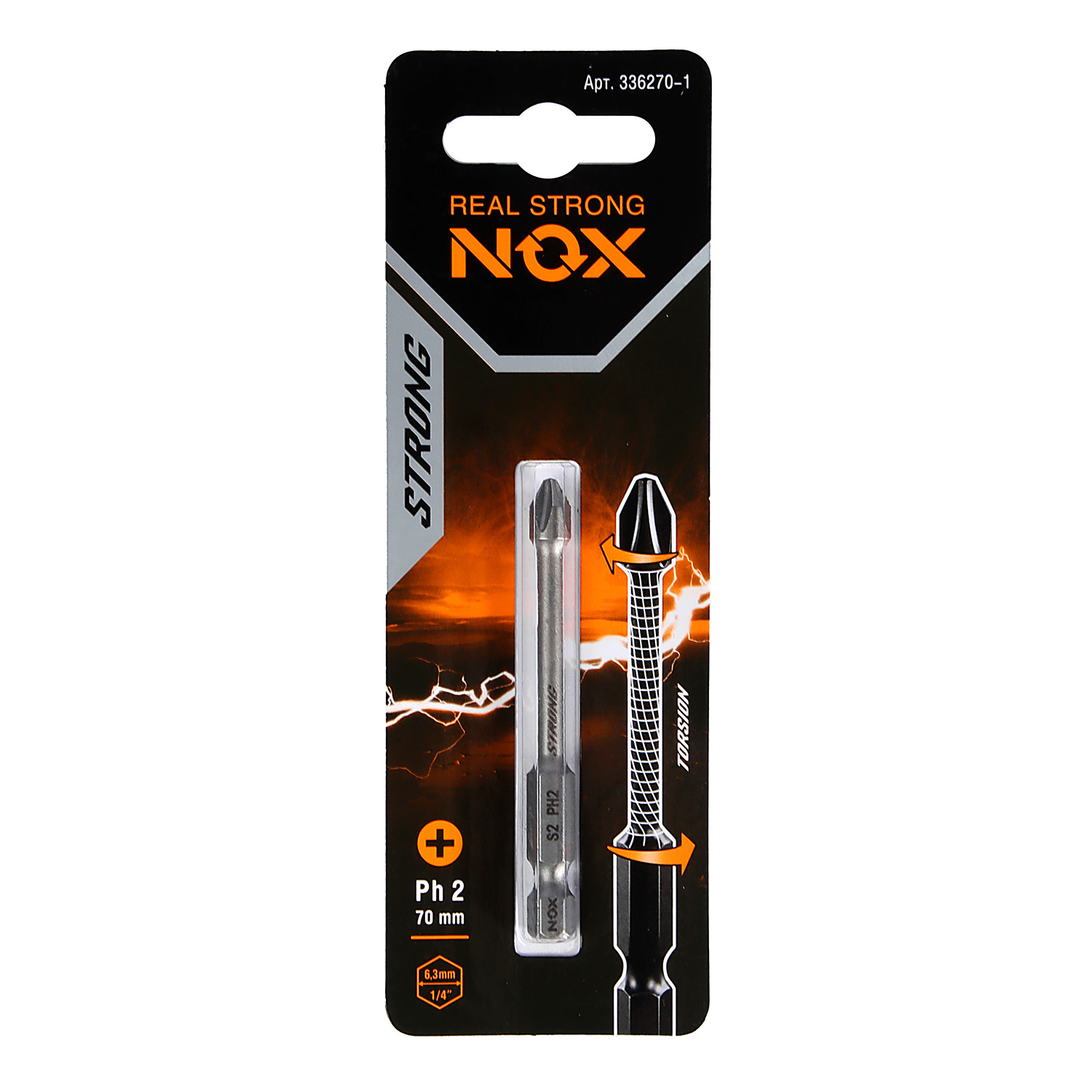 Бита крестовая PH2х 70мм (1шт) торсионная S2 хвостовик1/4"Е STRONG арт.336270-1 NOX *10/50/100