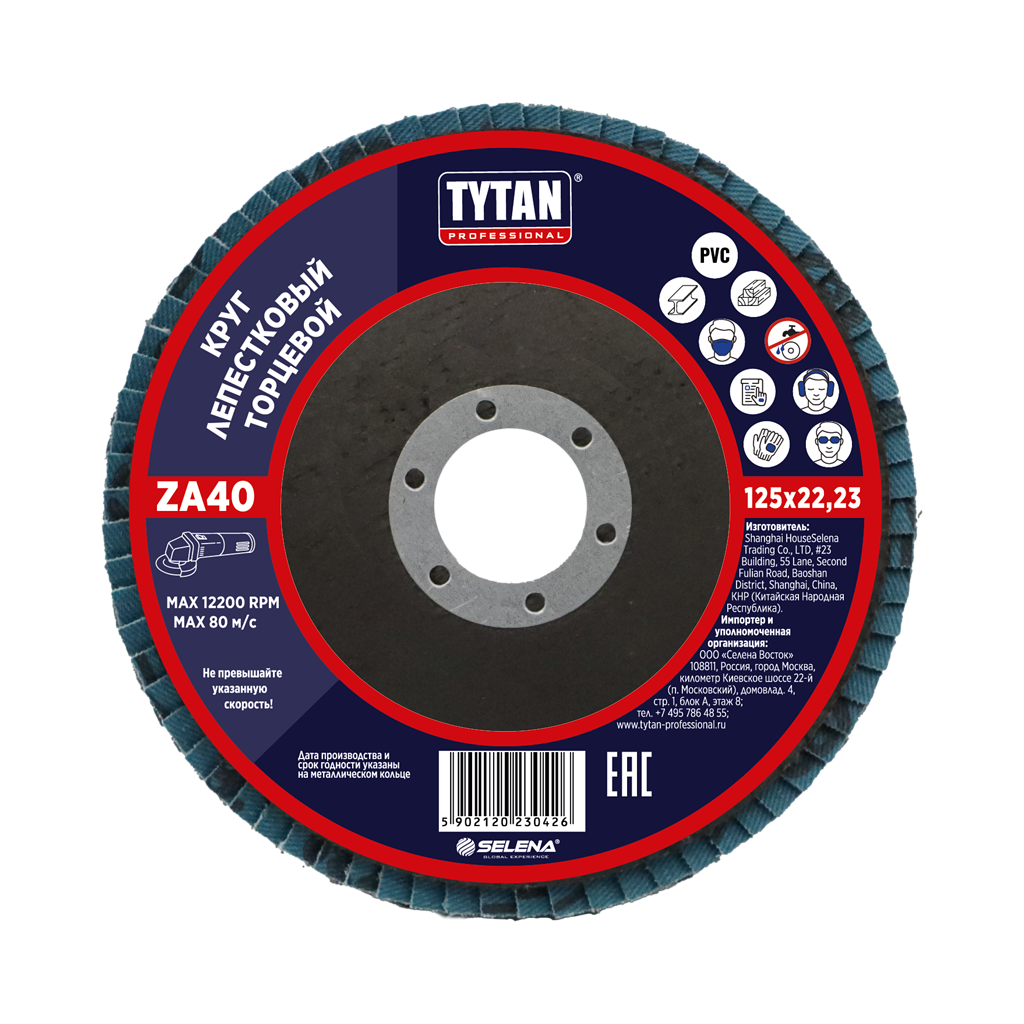 Круг шлифовальный лепестковый торцевой 125*22,23мм ZA 40 оксид циркония TYTAN *10/200