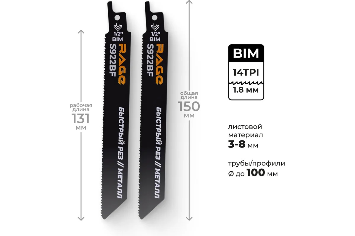 Полотно д/сабельной пилы МЕТАЛЛ 2шт 150/1,8мм прямой рез S922BF арт.552110 RAGE VIRA *10/100