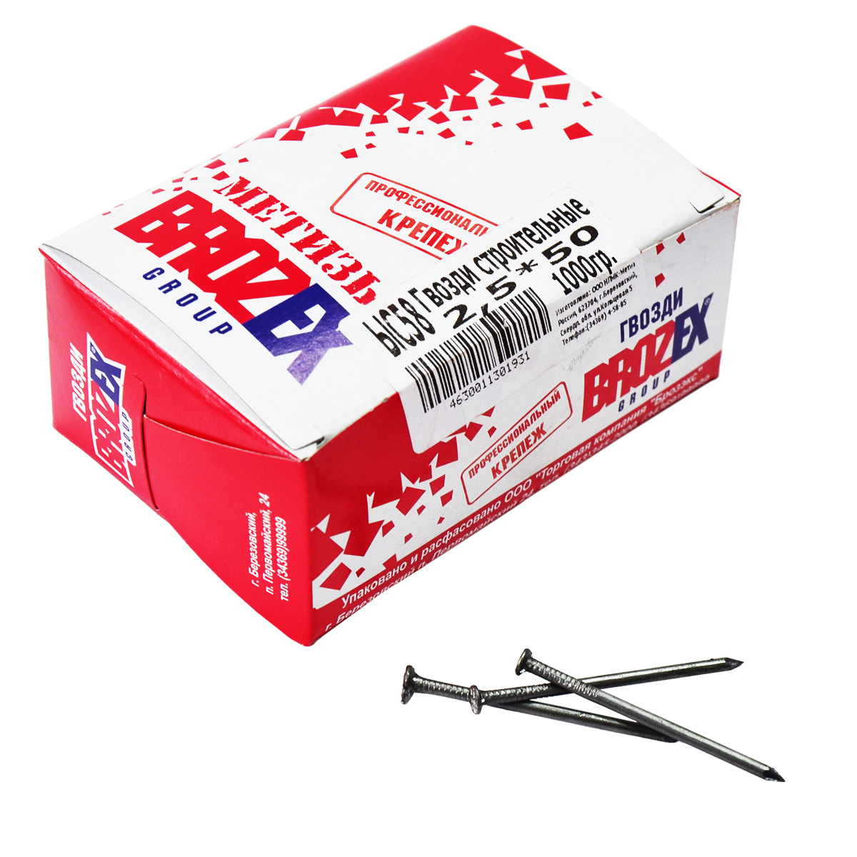 Гвозди строительные 2.5х50 мм BROZEX, 1 кг