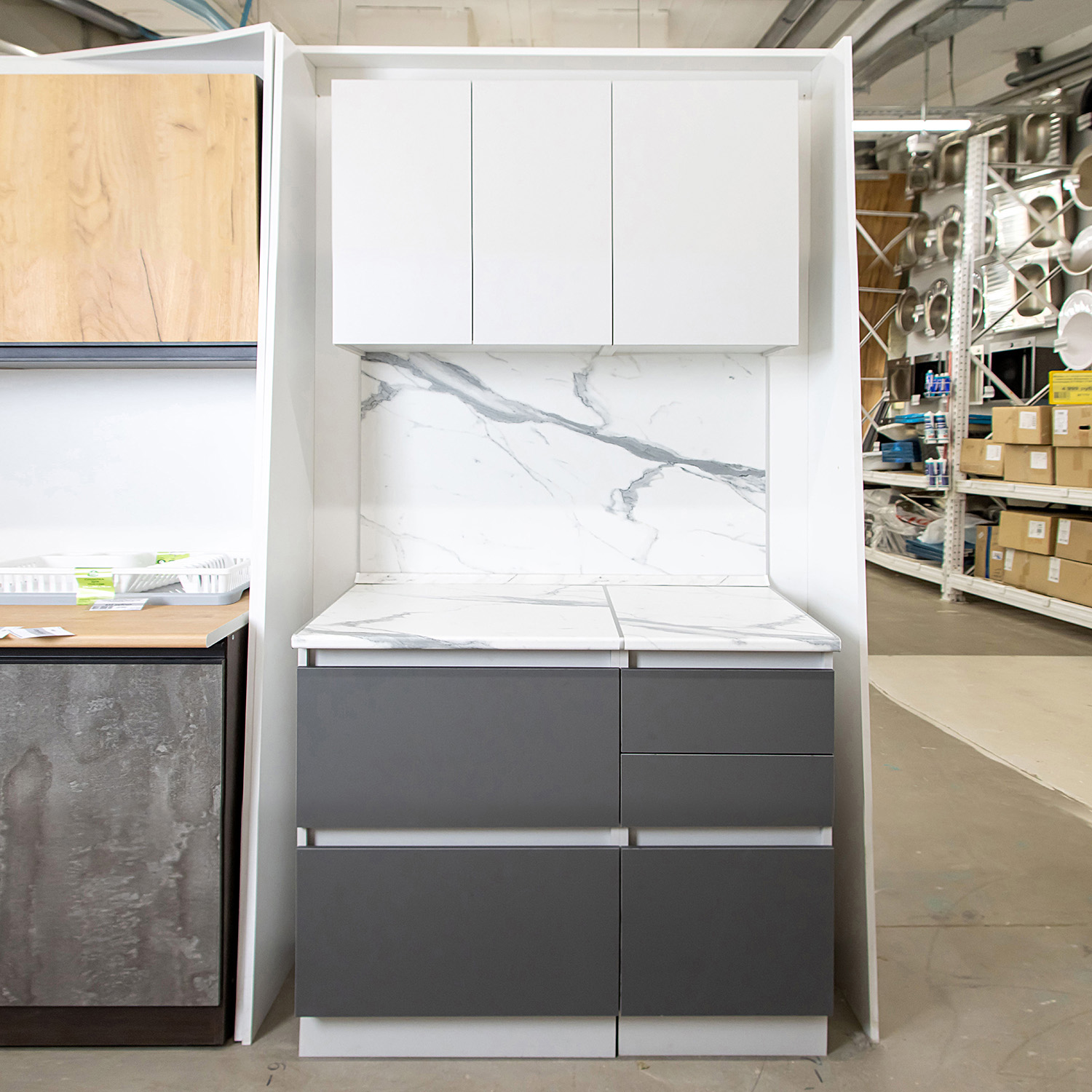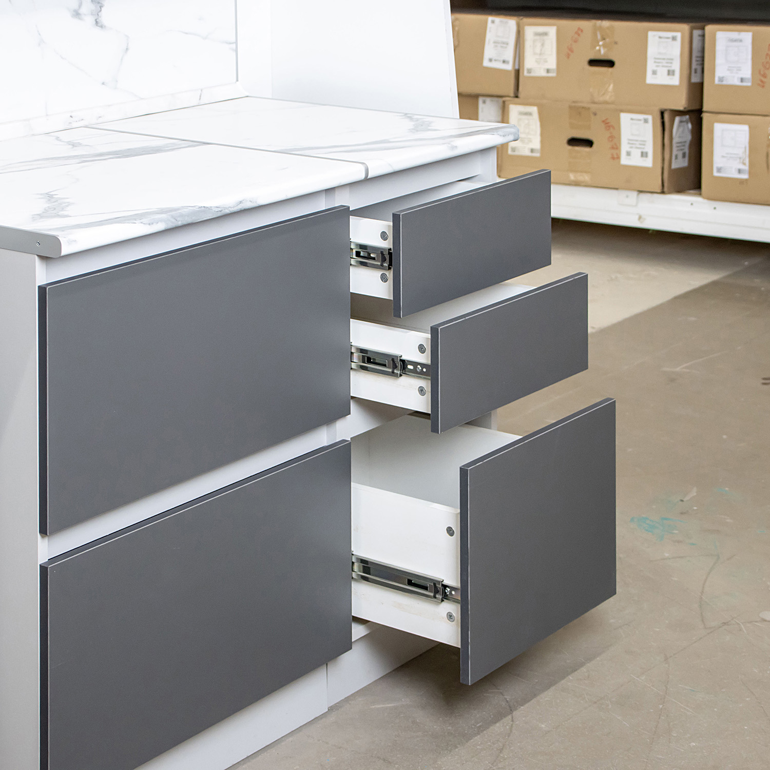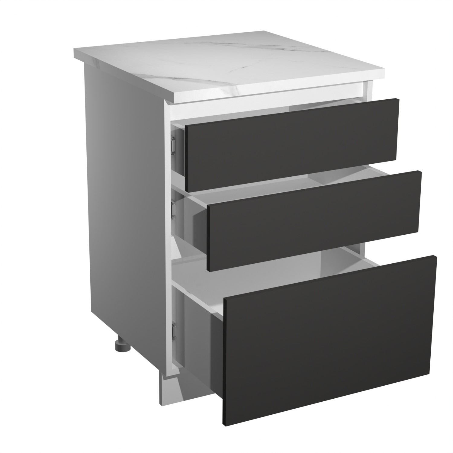 Шкаф напольный 600х850х600 мм BROZEX-WOOD Серый лед, с тремя ящиками, серый / графит