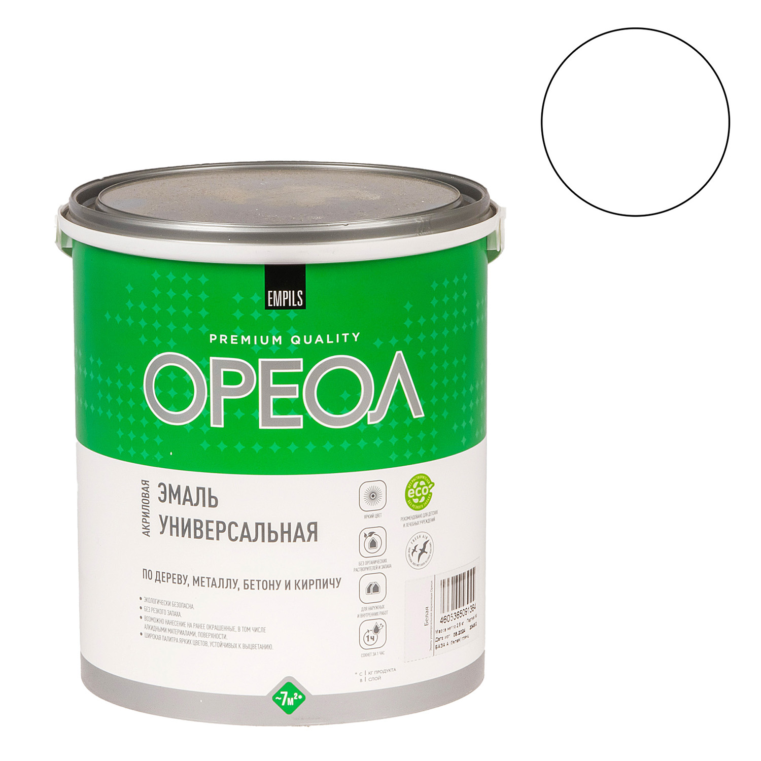 Эмаль акриловая белая 2,5 кг Ореол *1/4/120
