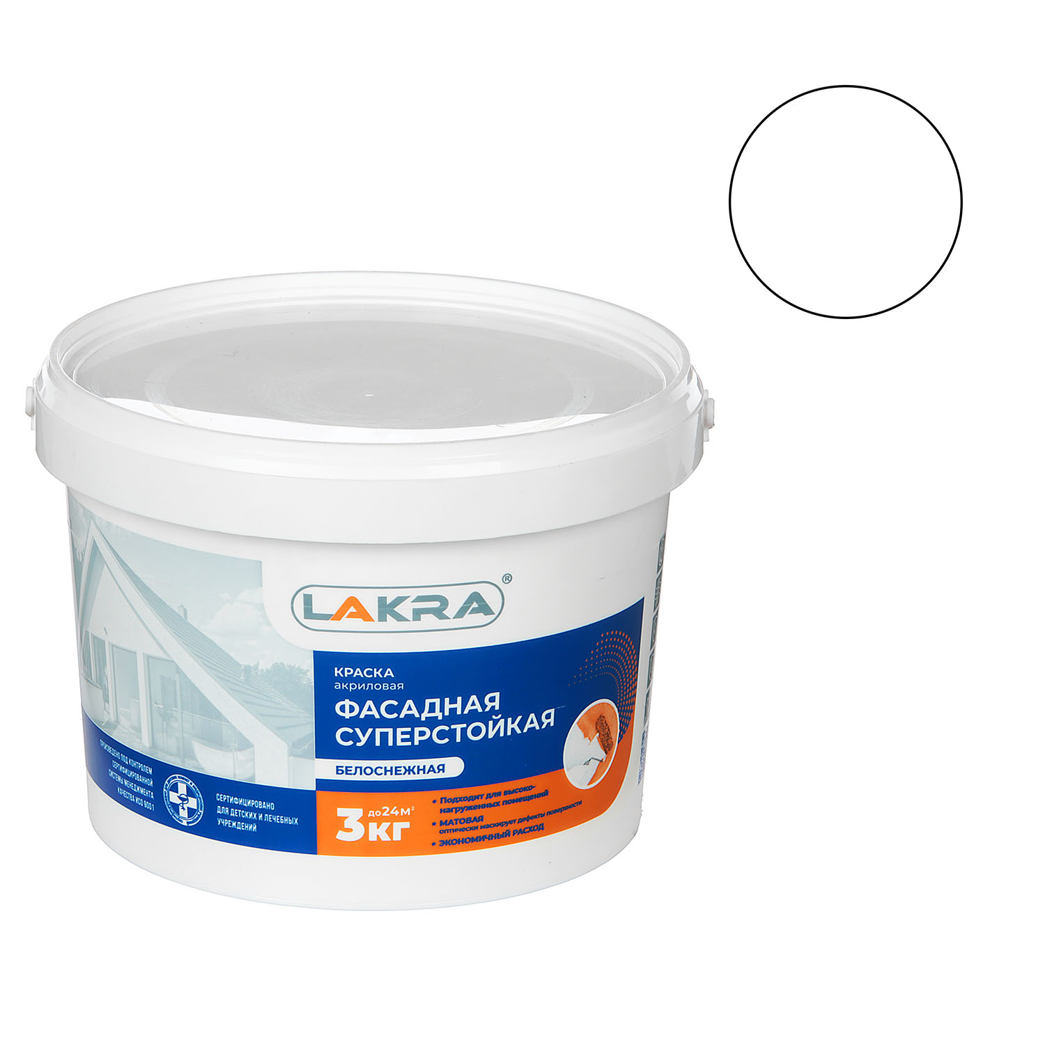 Краска акриловая 3 кг фасадная ЛАКРА, суперстойкая