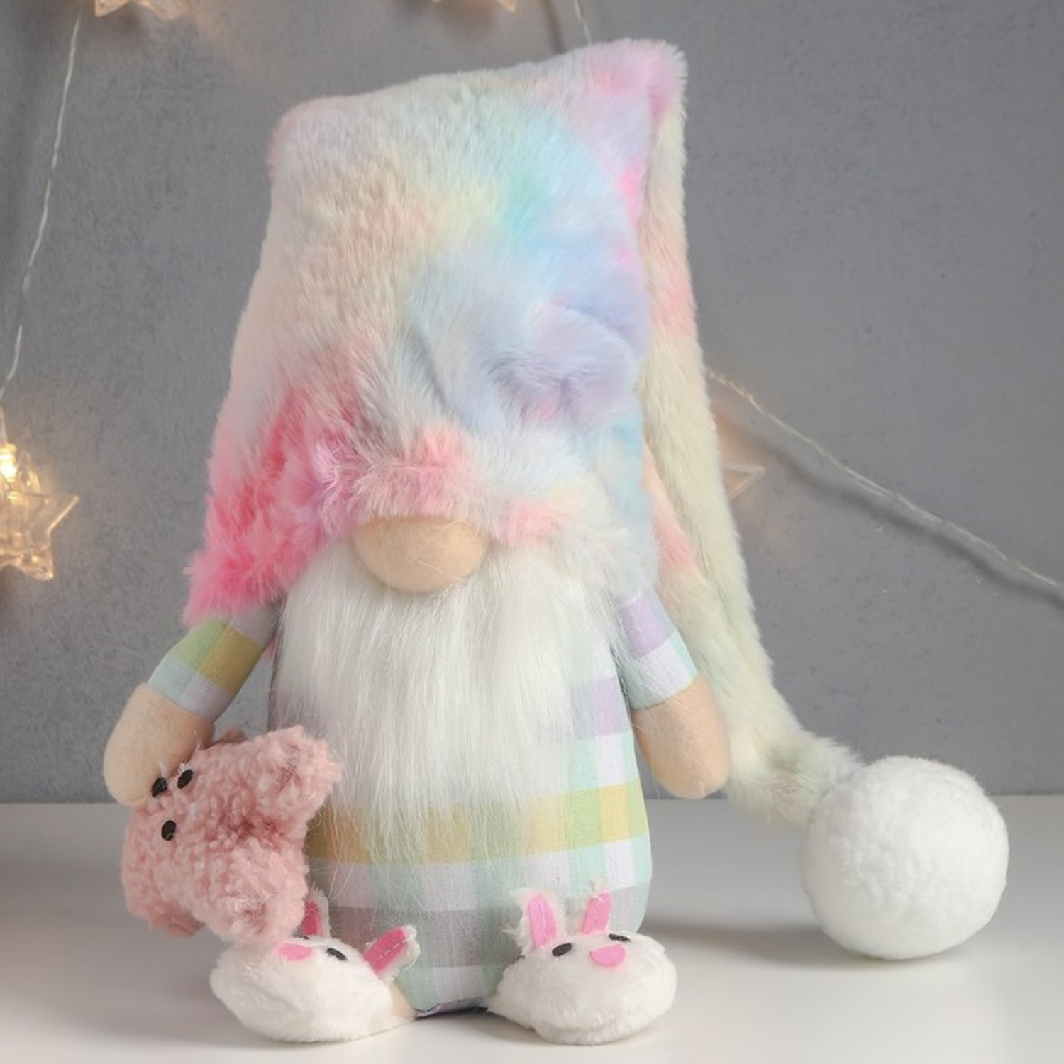 Кукла интерьерная "Гном в пижаме и тапочках, с игрушкой-зайкой" 57х13х13 см 7575258