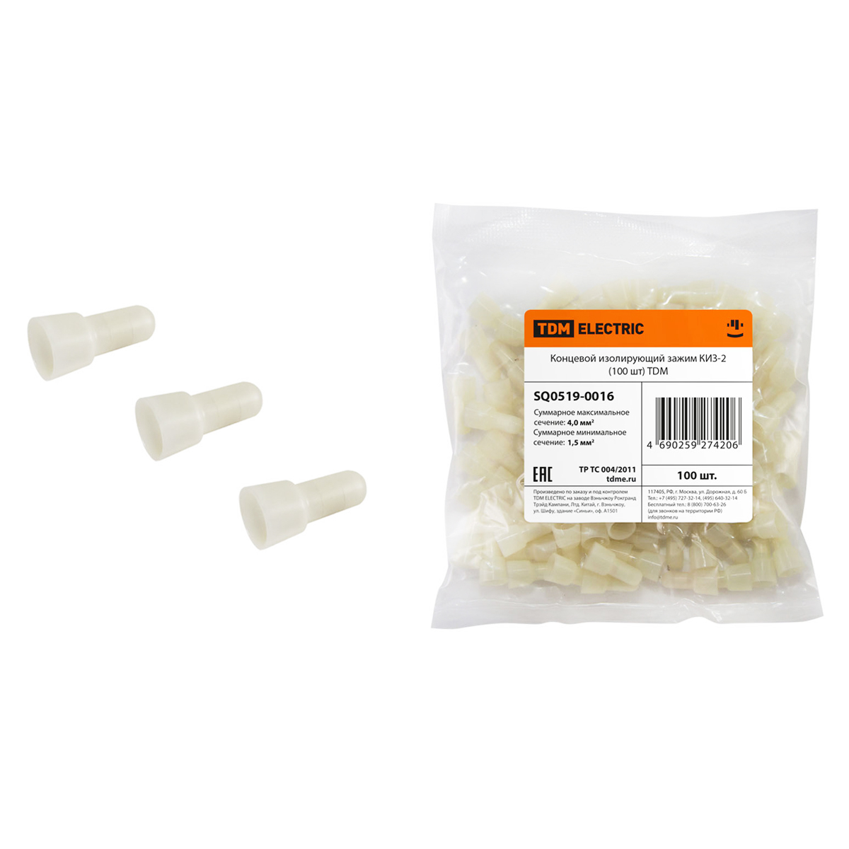 Зажим изолирующий концевой 1,5-4,0мм2 КИЗ-2 (100шт) TDM SQ0519-0016 *1/15