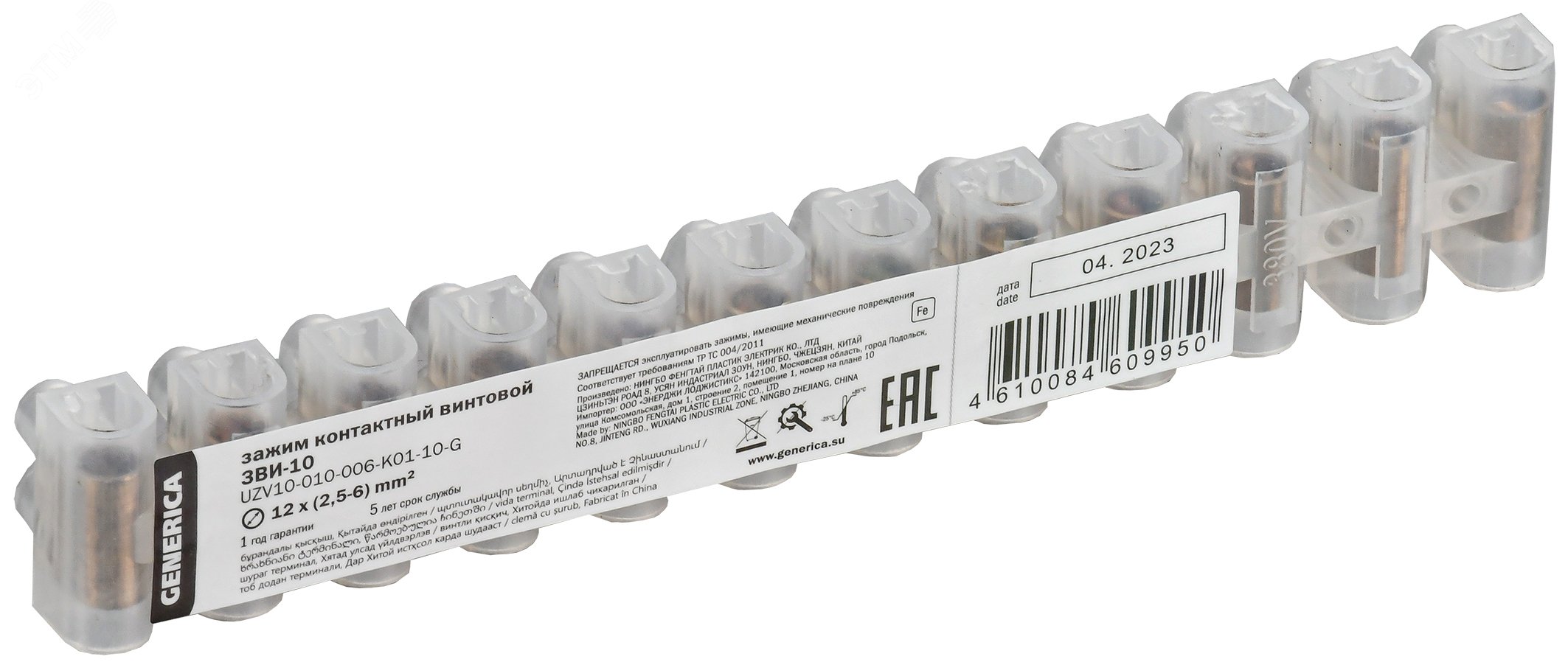 Колодка клемная ЗВИ-10 2,5-6мм2 (12пар) белый GENERICA IEK *10/800