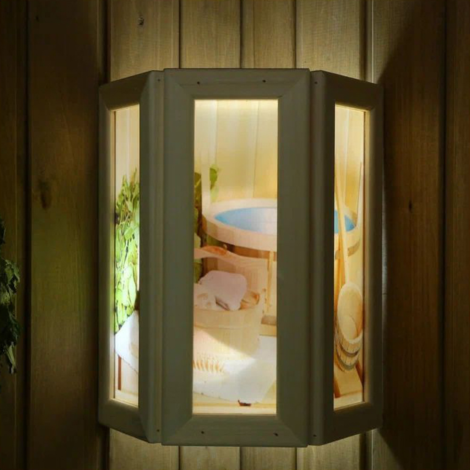 яяяАбажур деревянный "Банные аксессуары" со вставками из стекла с УФ печатью, 33х29х12см 3581404