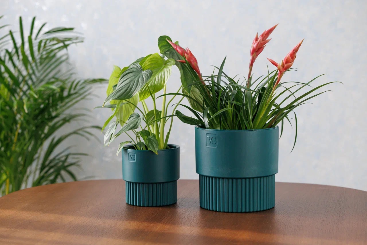 Кашпо пластм. "Бостон" 1,6л d верха 137мм h132мм со вставкой Изумруд АМБ-1,6-20 ("VipSet") *1/10