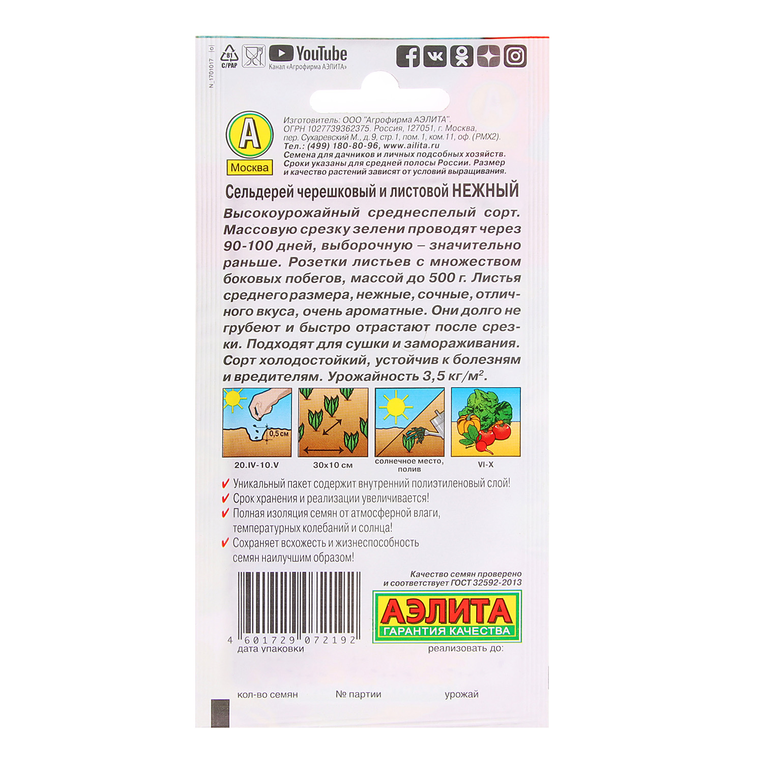 Семена Сельдерей листовой Нежный 0,5гр Аэлита цв *10/500
