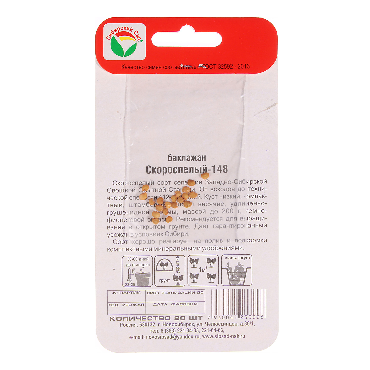 Семена Баклажан Скороспелый 20шт Сибирский сад *10/500