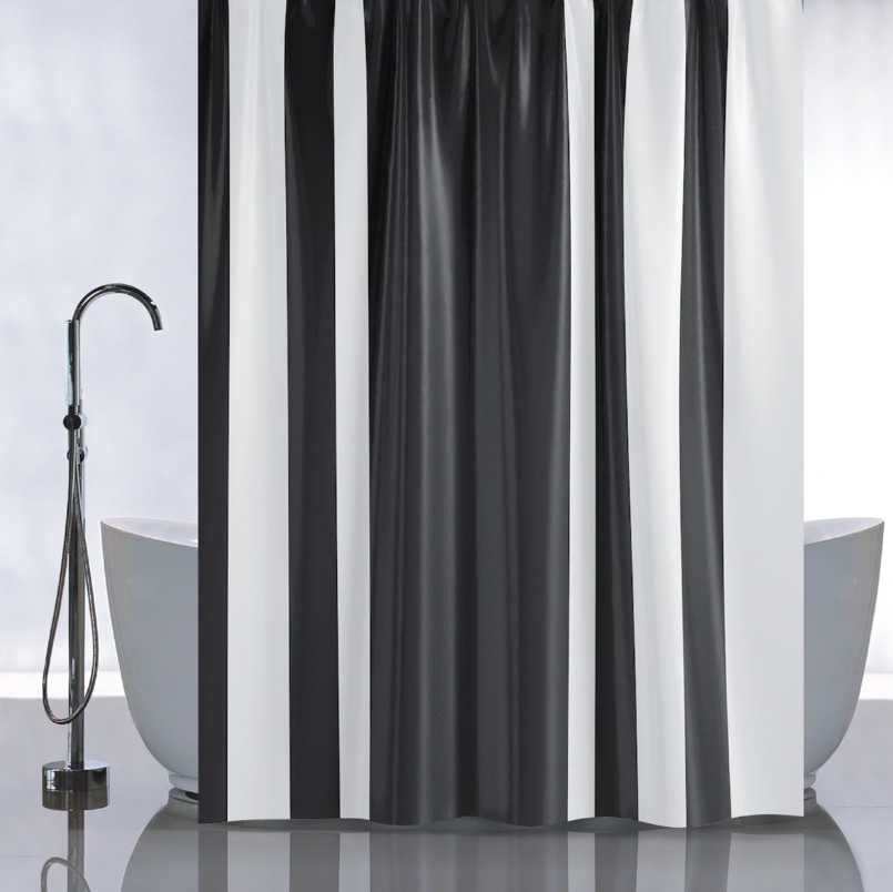 Штора для ванной "Санакс" п/эстер 180*180см "Черные полосы" без колец 01-97 *1/24