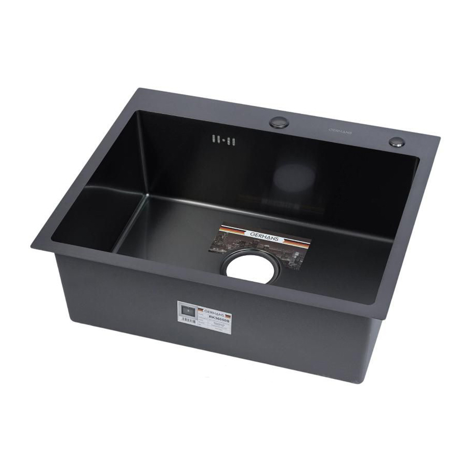 Мойка нерж. врезная 600х500х220мм графит, толщ.1мм, с сифоном, отв. под смеситель, GERHANS *1/5