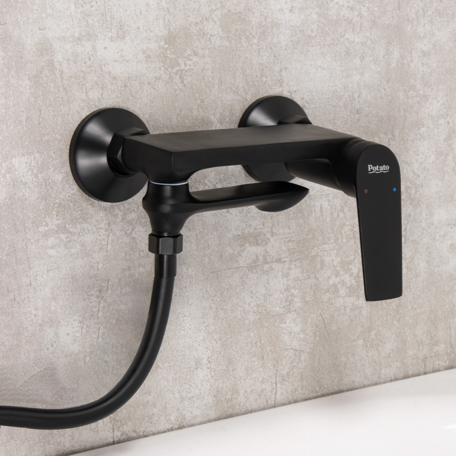 Смеситель для ванны "Potato" P30167-6 короткий излив (черный матовый) *1/10