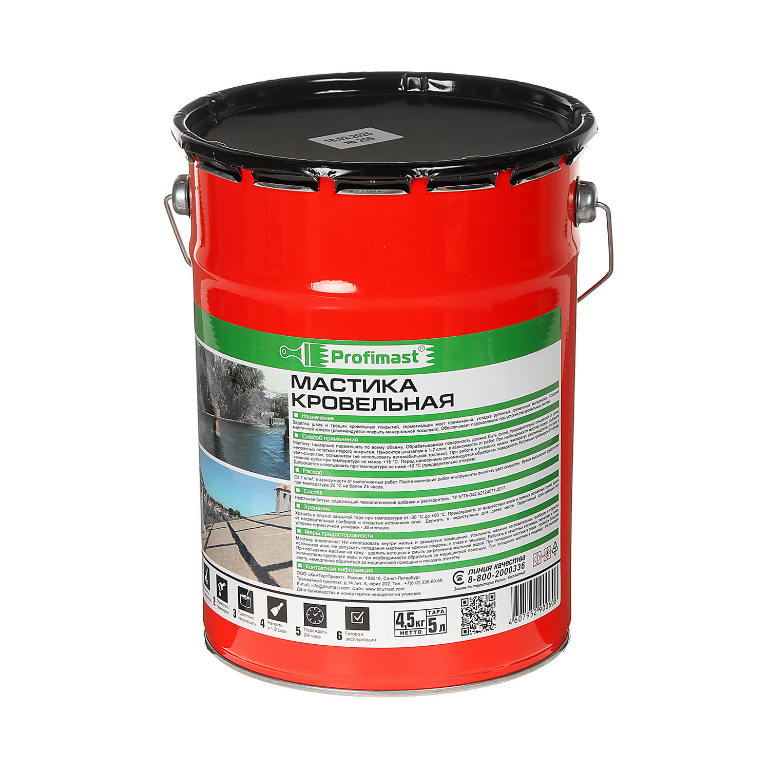 Мастика битумная кровельная Profimast 5 л — состав на основе высококачественного кровельного битума. Обладает густой консистенцией, не растекается в горизонтальных швах и трещинах. Содержит гербицидную добавку, препятствующую прорастанию сорняков, мхов и лишайников в кровельном полотне. Совместима с большинством битумных и битумно-полимерных материалов. Не содержит толуола и других токсичных растворителей.