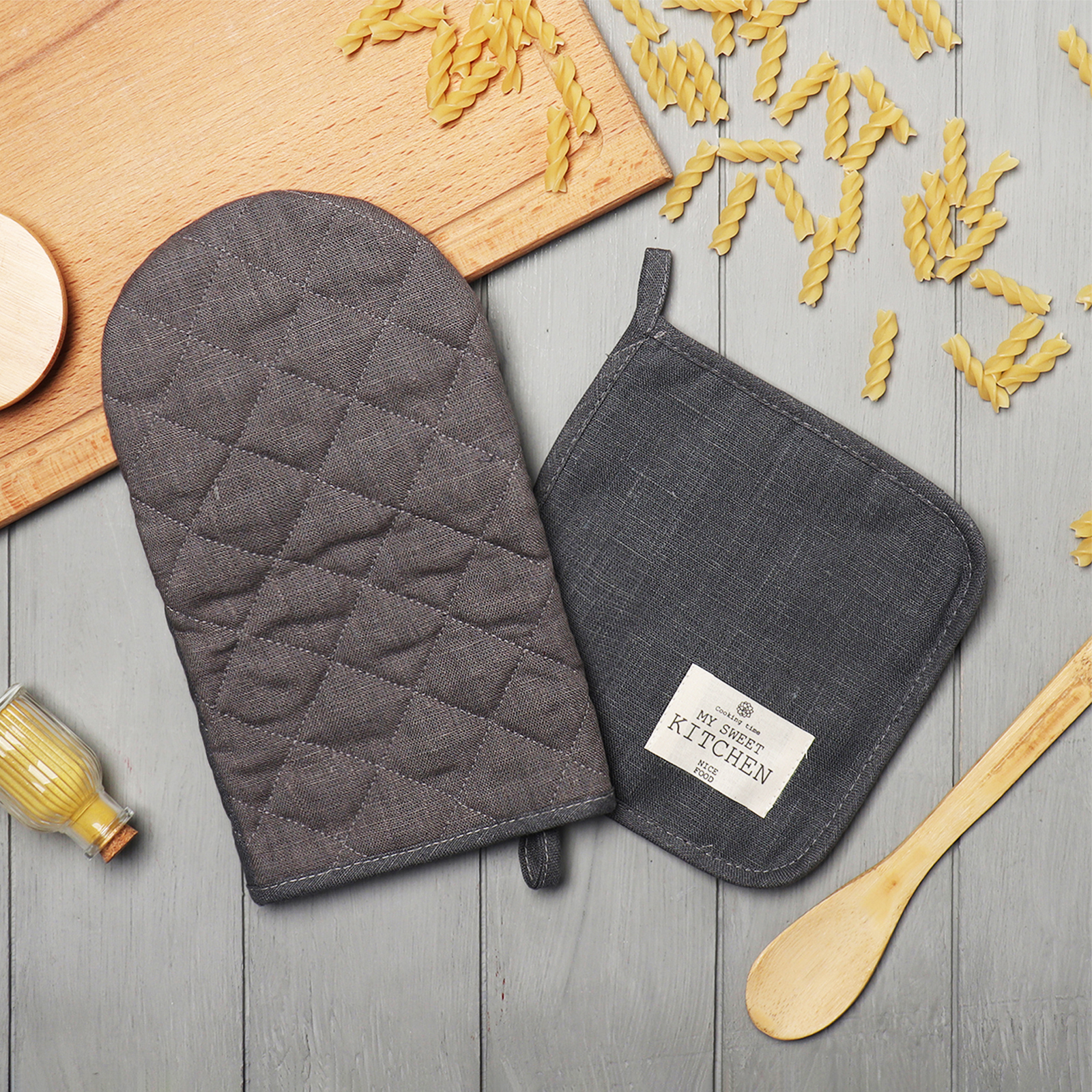 Набор прихваток ECO light grey варежка-прихватка 15х28см, прихватка 19х19см 100% лен Этель *1