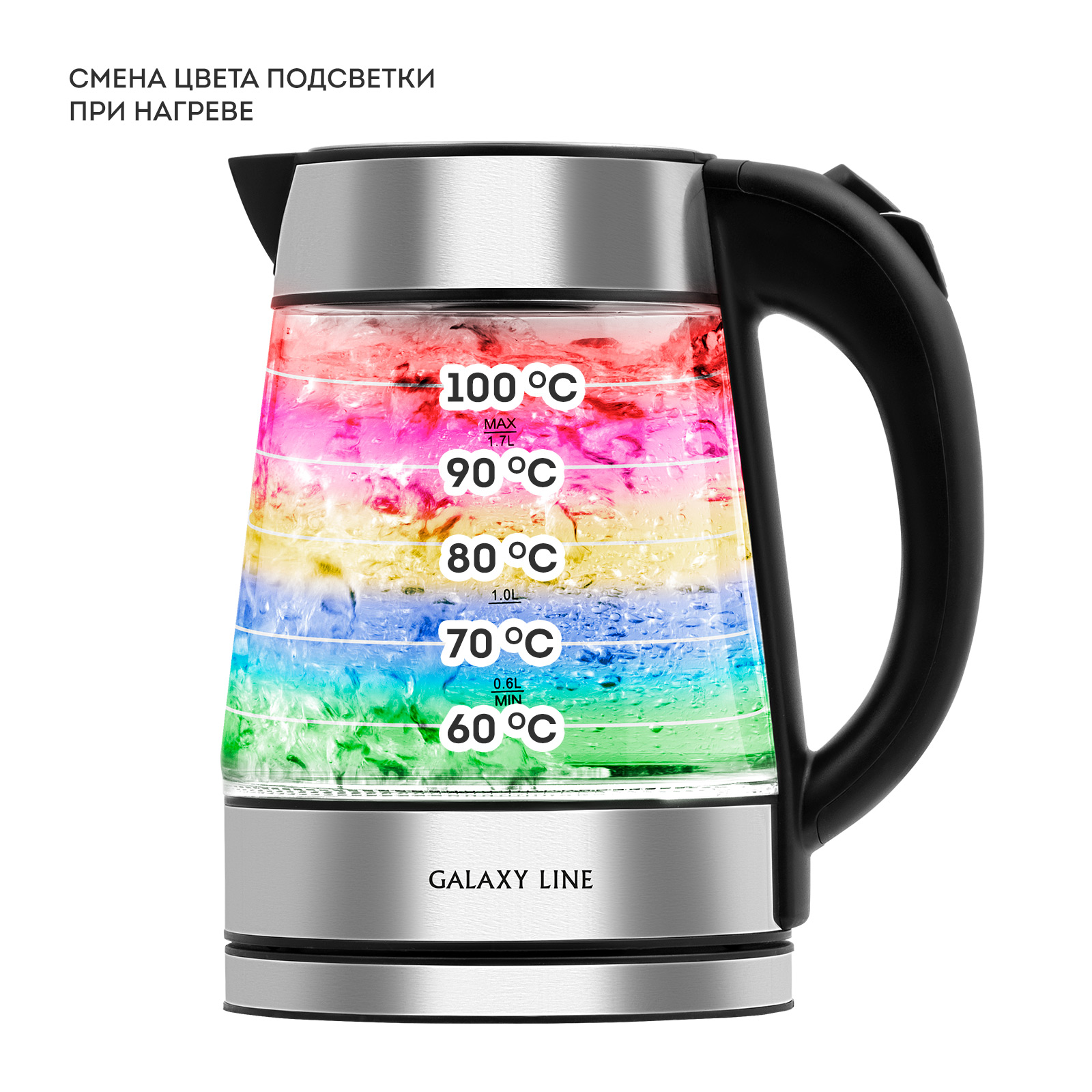 Чайник эл. стекло 1,7л 2200Вт GALAXY LINE GL 0561 цветная подсветка, темостойкое стекло *1/6