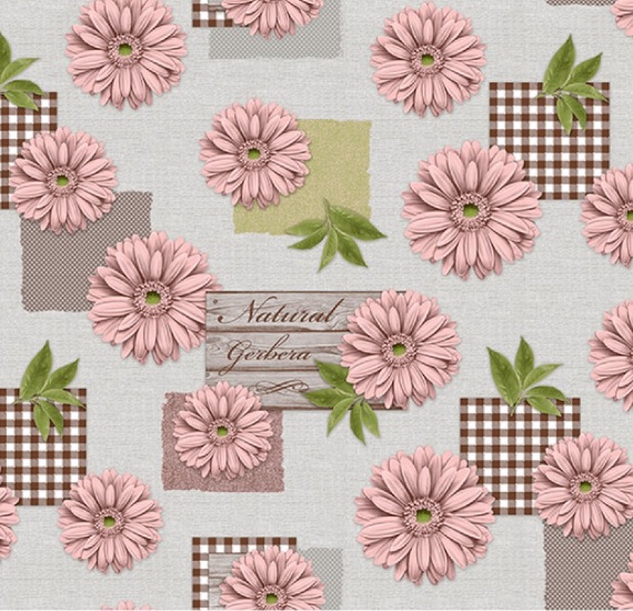 Клеёнка на нетканой основе "Мажор" "Герберы розовые" на св.сером шир."1,35м 621/15 "Колорит" *20
