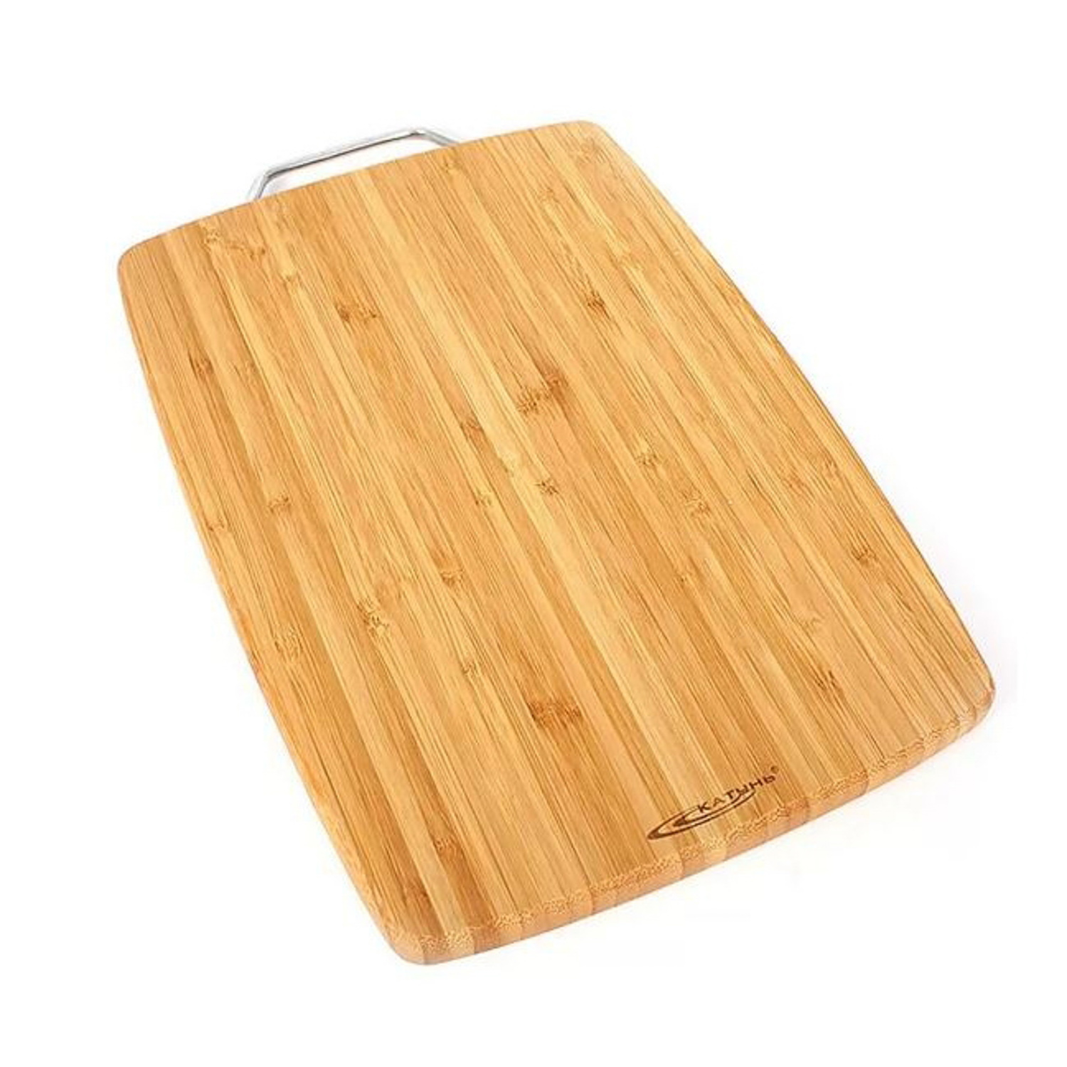 Доска разделочная дерев. (бамбук) 340х240х18мм, с металл. ручкой №2 арт.КТ-ДР-112 "Катунь" *1/12