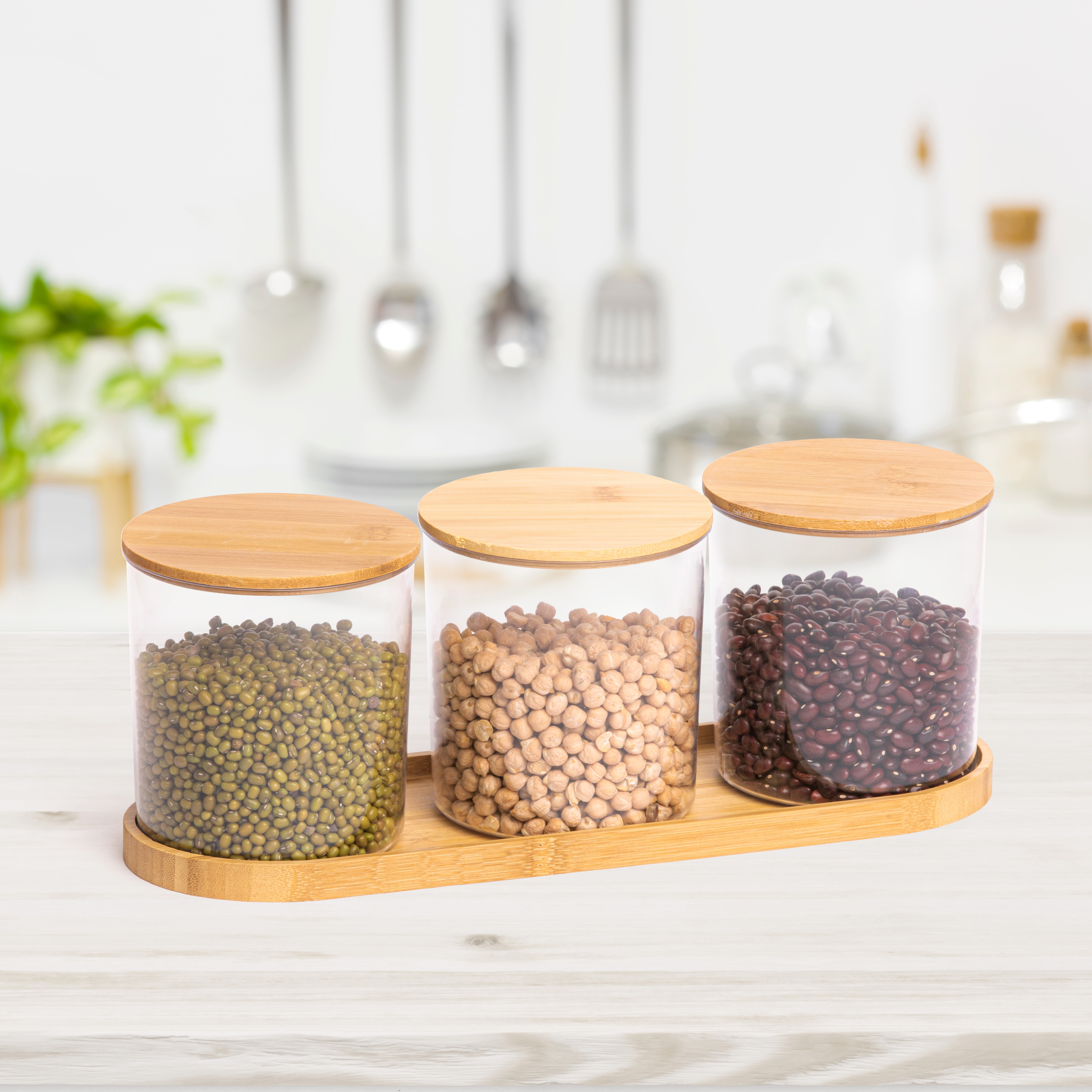 Набор емкостей для сыпучих прод. пластм. "Бамбук" 3х 0,7л на подставке М8541 *1/12