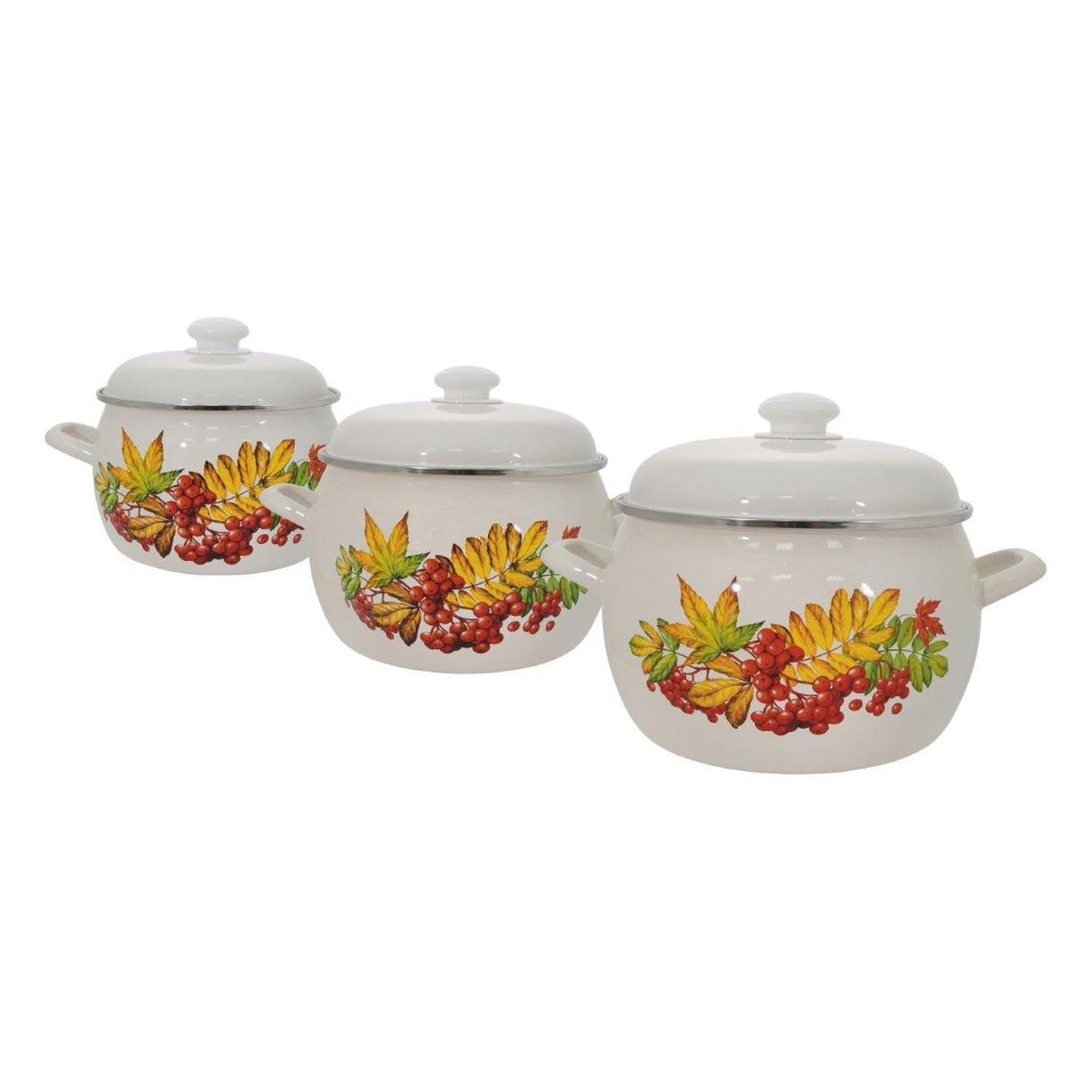 Набор кастрюль эмалированных: 2,0л+3,5л+5,0л рис. "Рябина" С-207АП2/4 "Лысьвенские ЭМАЛИ" *1