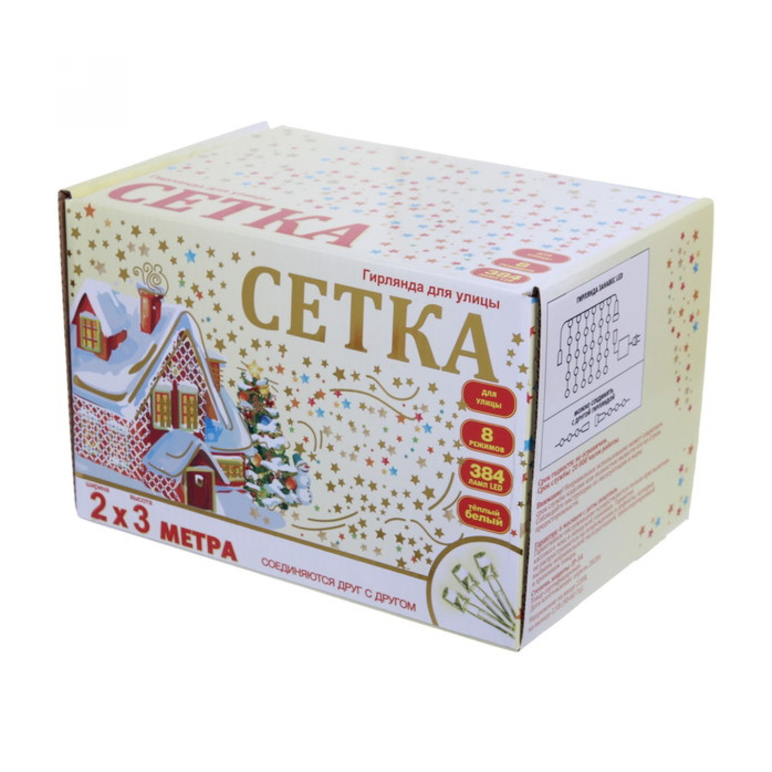Гирлянда для улицы СЕТКА ш2,0* в3м 384 ламп LED, прозр.пров, 8 реж, Белый (возможность соединения)
