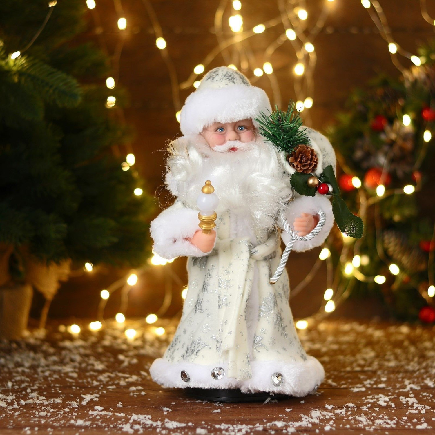Дед Мороз "В белой шубке с подарками" двигается, с подсветкой, 30 см 3555401