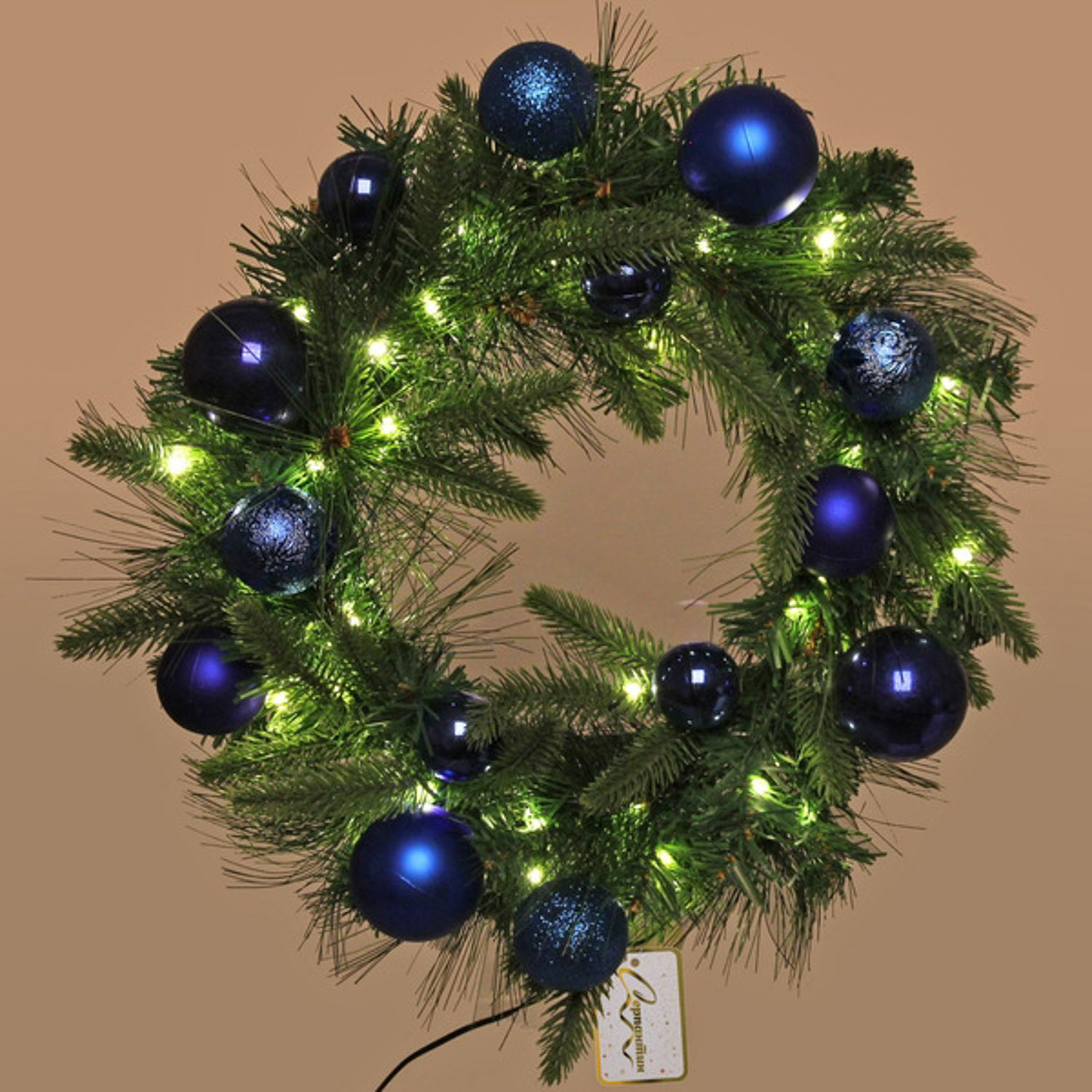 Венок хвойный "Сказочное чудо" d-40 см, ПВХ, литой ПВХ, Синий