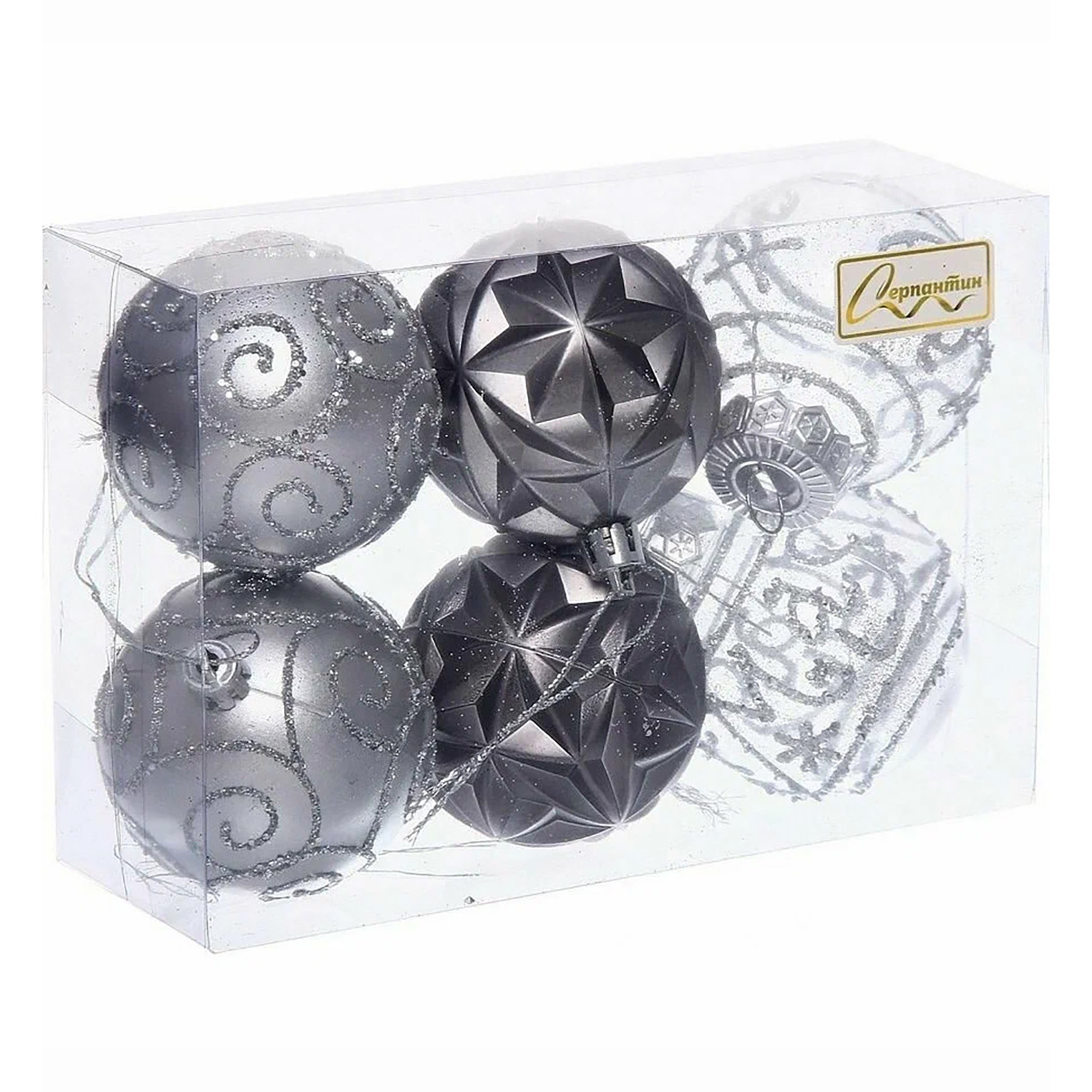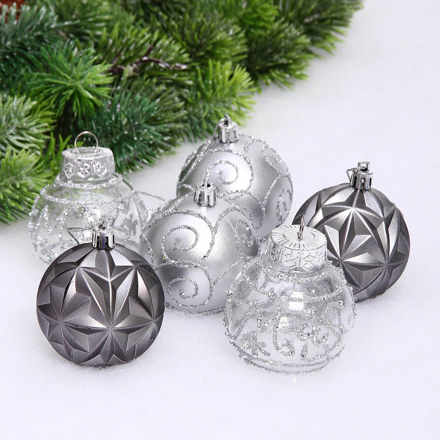 Набор шаров "Фантазия" 6 см (в наборе 6 шт), Графит, серебро