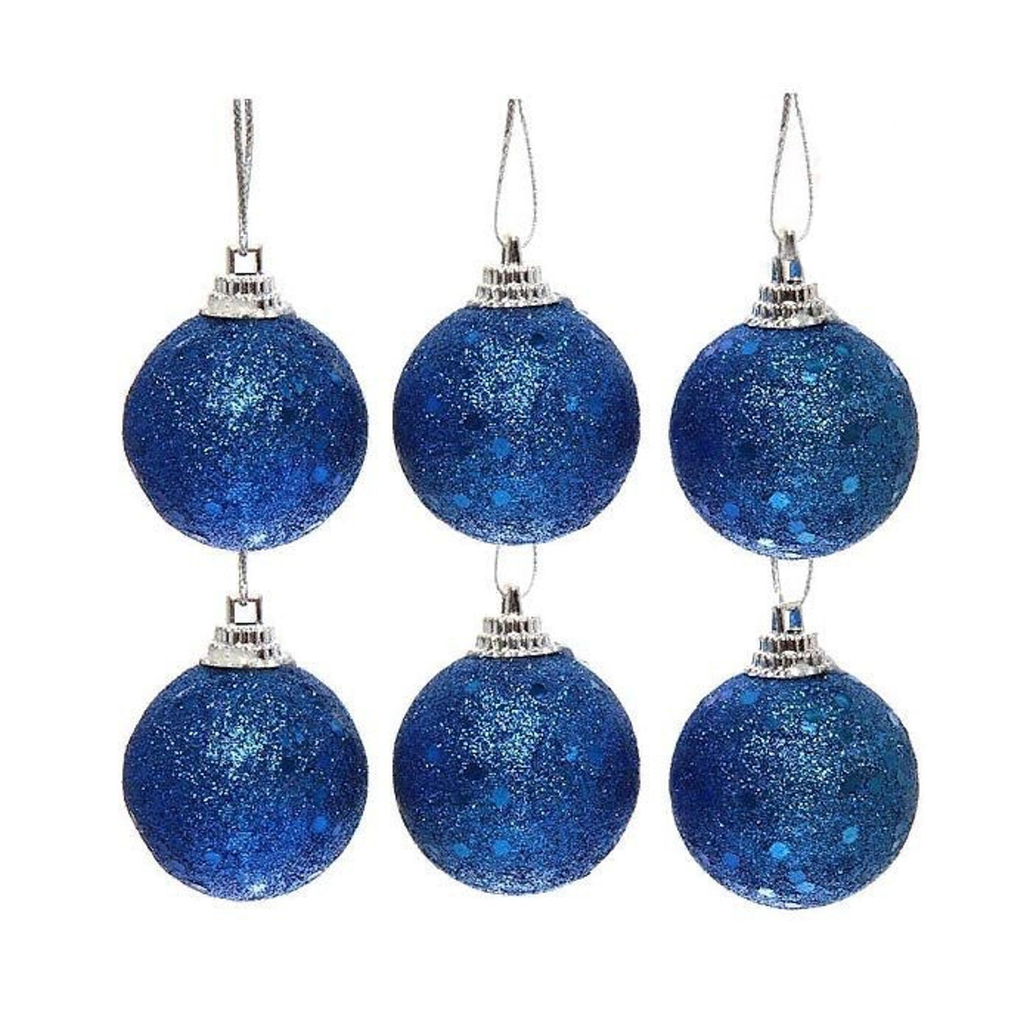 Новогодние шары 4 см "Посыпка из блёсток" набор 6 шт, синий