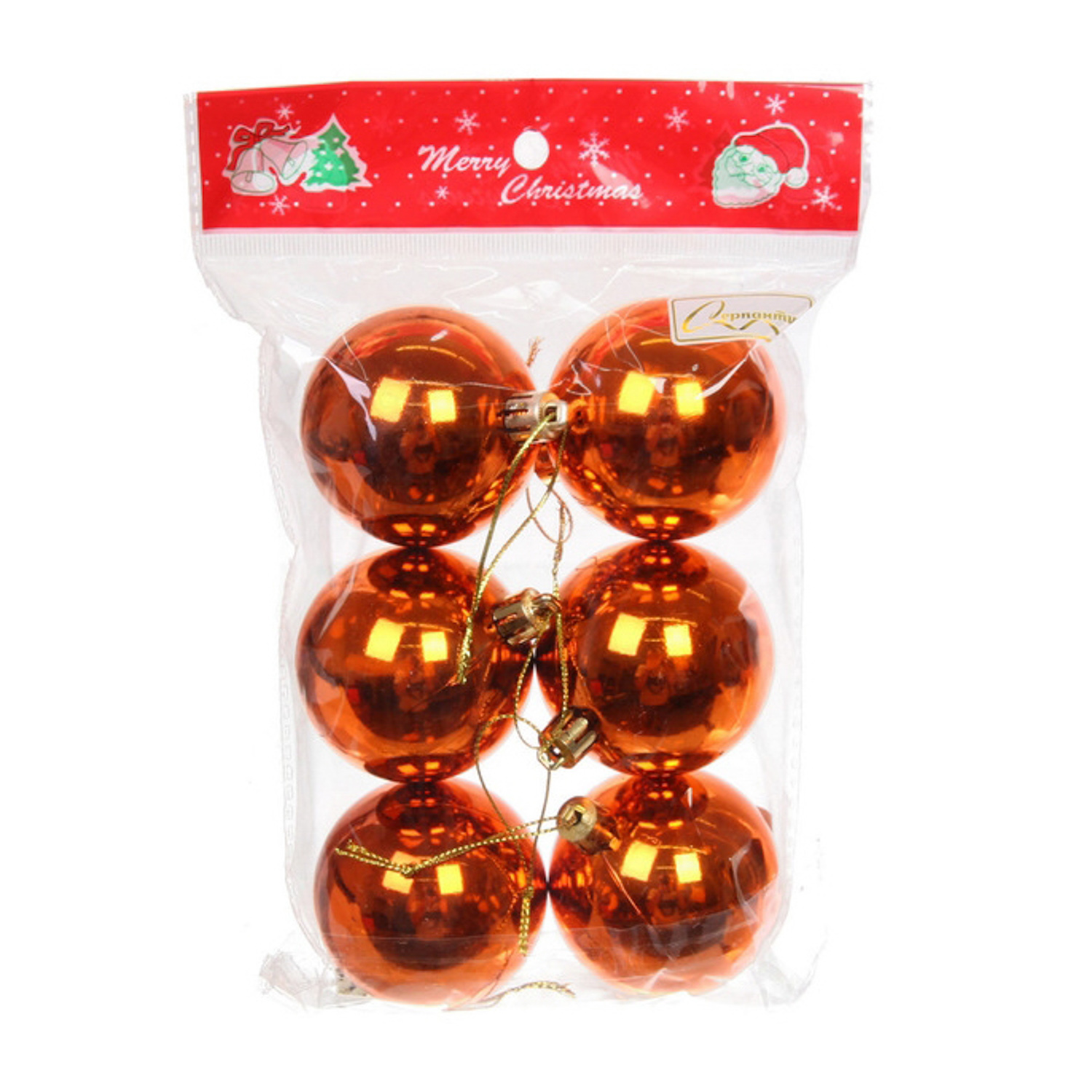 Новогодние шары 6 см (набор 6 шт) "Глянец", Янтарь