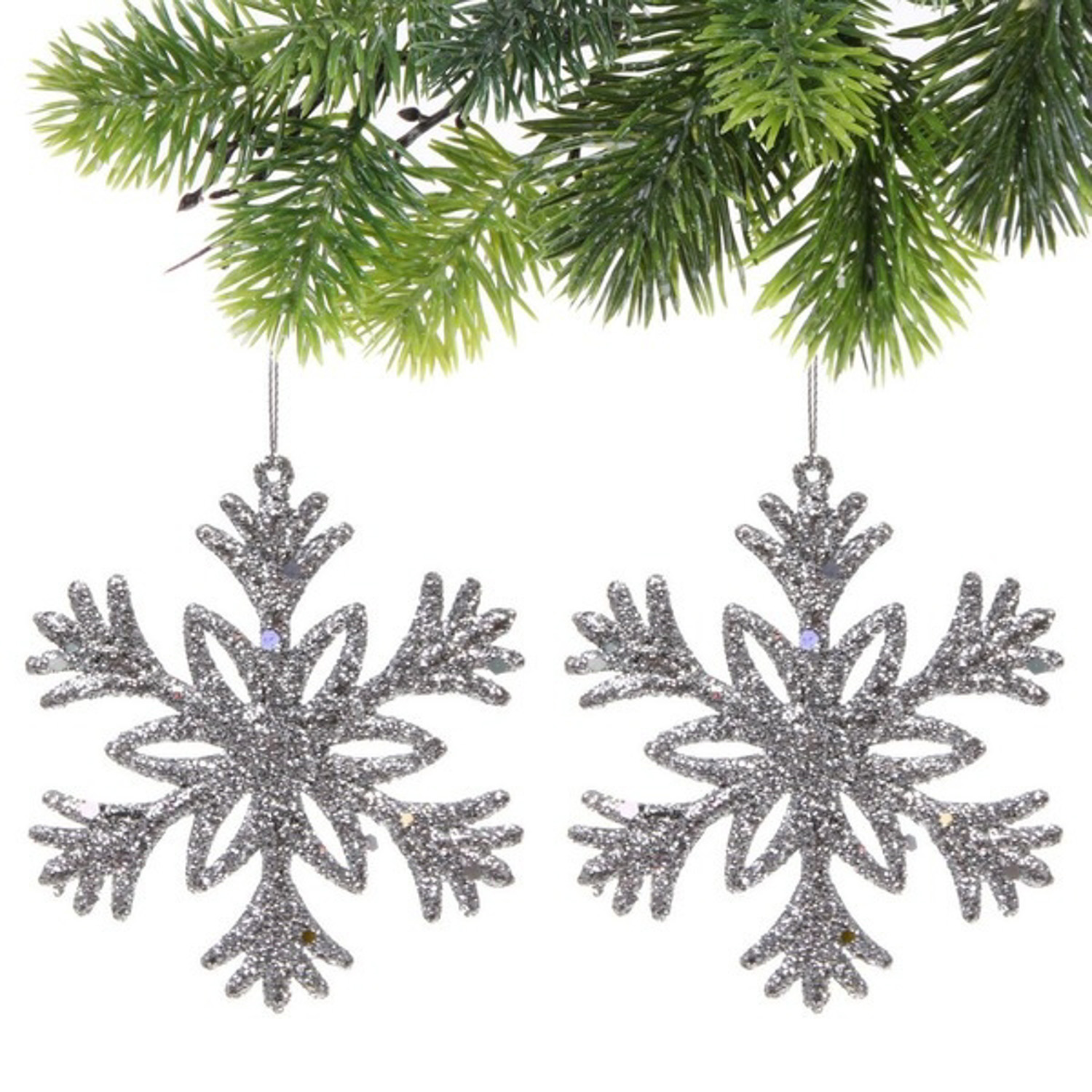Подвеска "Снежное волшебство" 10 см (набор 2 шт), серебро