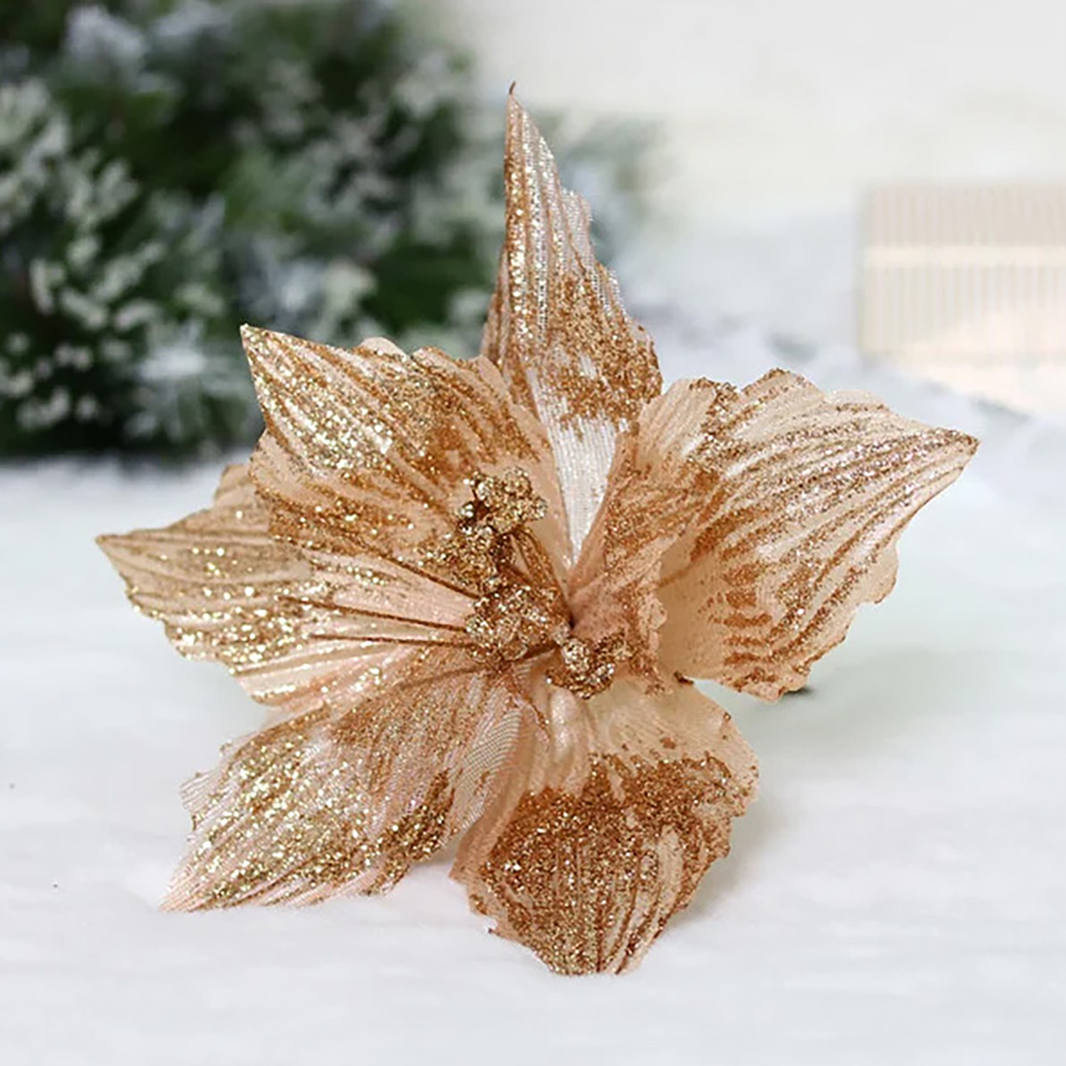Украшение новогоднее Серпантин «Пуансеттия-Блеск», 19 см, шампань