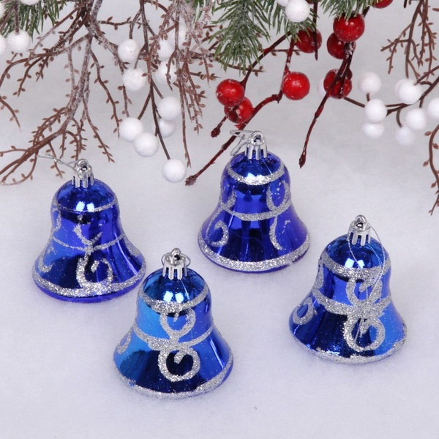 Ёлочные игрушки "Колокольчик вензель" 5,5 см (набор 4 шт), синий