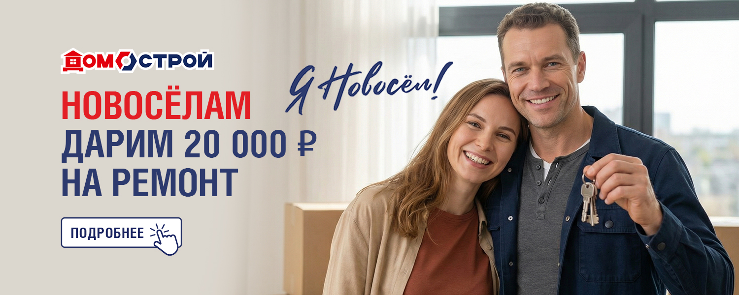Дарим новоселам 20 000 бонусов на покупку! Если недавно вы стали обладателем нового жилья, у нас для вас отличные новости! Домострой дарит вам купон на 20 000 бонусов, которыми можно оплатить до 20% от суммы покупки. Тратить средства можно в течение 12 месяцев со дня получения купона — сумма будет списываться после каждой покупки.